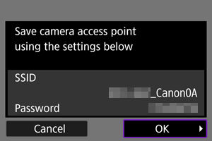 Sieťové nastavenia pre režim prístupového bodu fotoaparátu sa konfigurujú automaticky.