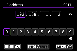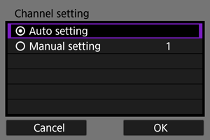 - Výberom možnosti [Select from list/Vybrať zo zoznamu], keď už sú komunikačné nastavenia zaregistrované vo fotoaparáte, môžete použiť zaregistrované nastavenia.