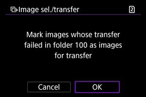 - Výberom položky [Select transfer failed images/Vybrať snímky s neúspešným prenosom] sa vyberú všetky snímky vo vybratom priečinku, ktorých prenos nebol úspešný.