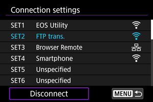 - V uložených nastaveniach vyberte nastavenia, ktoré sa majú použiť na pripojenie.