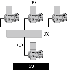 Ak používate viac prijímacích fotoaparátov, pripojte kábel LAN z ethernetovej koncovky vysielacích a prijímacích fotoaparátov k rozbočovaču. Je možné pripojiť až 10 prijímacích fotoaparátov.