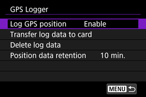 Zaznamenané údaje o polohe môžete preniesť na kartu vybratú v časti [Transfer log data to card/Preniesť zaznamenané údaje na kartu].