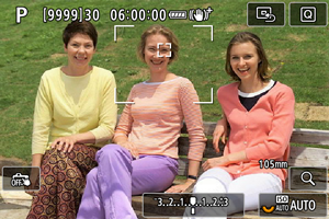 - Poloha oblastí a bodov AF pri zastavení sledovania počas pohotovostný režimu snímania zodpovedá polohe sledovacieho rámu počas sledovania.