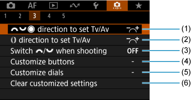 direction to set Tv/Av/