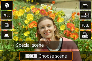 • Pomocou voliča Hlavný volič vyberte režim snímania a stlačte tlačidlo Nastavenie/rýchle ovládanie.