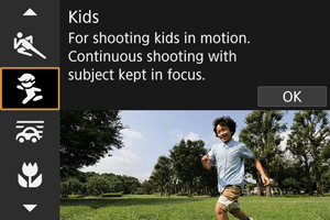 Režim [Deti] (Kids/Deti) použite na snímanie aktívnych detí, ktoré sa neustále pohybujú. Tóny farby pleti budú vyzerať živo.