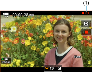 Nahrávanie] (1) a okolo obrazovky sa zobrazí blikajúci červený rám.