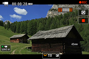 - Ak sa počas nahrávania videozáznamu s automatickou expozíciou zmení jas, obraz videozáznamu sa môže na okamih zdanlivo zastaviť. V takom prípade nahrávajte videozáznamy s manuálnym nastavením expozície.