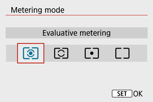 K dispozícii sú štyri spôsoby (režimy merania) na meranie jasu snímaného objektu. Za bežných okolností sa odporúča pomerové meranie expozície. Pomerové meranie je automaticky nastavené v režimoch Základnej zóny (s výnimkou režimu :