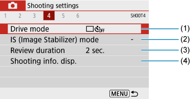 - (4) High ISO speed NR/Redukcia šumu pri vysokej citlivosti ISO