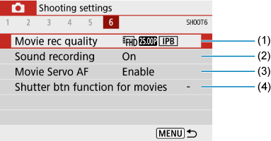 - (6) Shutter btn function for movies/Funkcia tlačidla uzávierky pre videozáznamy