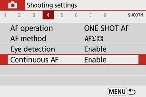 - Nastavením tejto funkcie na [Enable/Povoliť] zmenšíte počet dostupných záberov, pretože objektív je poháňaný nepretržite a energia batérie sa míňa.