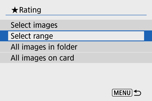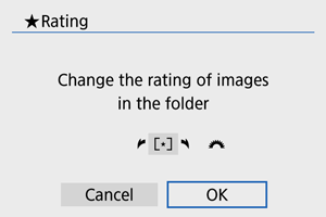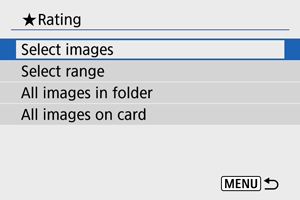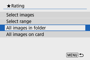 : Hodnotenie] vyberiete možnosť [All images in folder/Všetky snímky v priečinku] alebo [All images on card/Všetky snímky na karte], ohodnotia sa všetky snímky v priečinku alebo na karte.