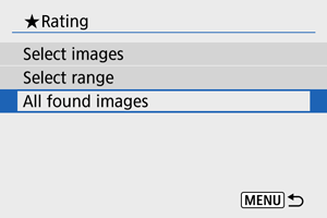 - Ak vyberiete položku [All found images/Všetky nájdené snímky], všetky snímky filtrované podľa podmienok vyhľadávania sa ohodnotia podľa špecifikácií.