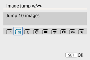 - V zobrazení [Jump images by the specified number/Skok o zadaný počet snímok] môžete otáčaním voliča