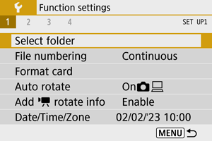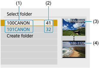 - Priečinok môže obsahovať až 9999 snímok (čísla súborov 0001–9999). Keď sa priečinok zaplní, automaticky sa vytvorí nový priečinok s číslom o jedno väčším. Nový priečinok sa vytvorí aj v prípade ručného vynulovania (). Vytvoriť možno priečinky s číslami od 100 do 999.