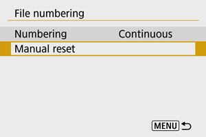 Postupnosť číslovania súborov nových uložených snímok začne znova od 0001 po výmene karty alebo vytvorení priečinka. Toto nastavenie je užitočné vtedy, ak chcete snímky organizovať podľa kariet alebo priečinkov.