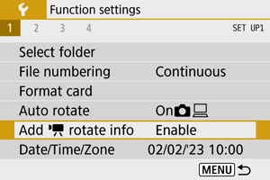 V prípade videozáznamov zaznamenaných fotoaparátom vo zvislej polohe je možné automaticky pridať informácie o orientácii, ktoré uvádzajú, ktorá strana je hore, čo umožní prehrávanie v rovnakej orientácii na smartfónoch alebo iných zariadeniach.