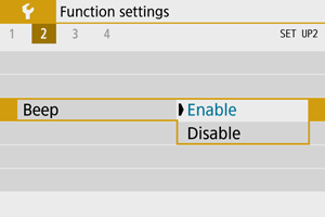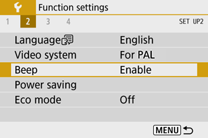 Zakáže zvukovú signalizáciu pri potvrdení zaostrenia, snímaní pomocou samospúšte a ďalších situáciách.