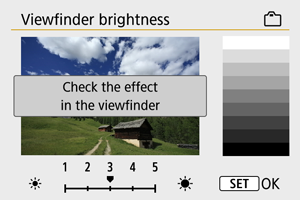 - Podržte hľadáčik pred okom a upravte nastavenie pomocou tlačidiel