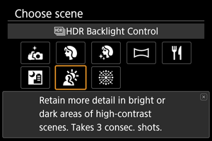- Ovládanie snímania v protisvetle HDR nemusí byť účinné pri scénach s nadmerným protisvetlom alebo s mimoriadne vysokým kontrastom.