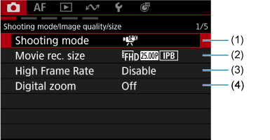- (2) Shooting info. disp./Zobrazenie informácií o snímaní