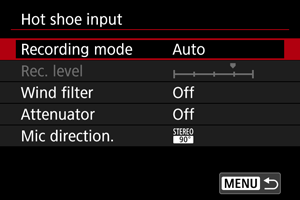 Pri nastavení na možnosť [Hot shoe input/Vstup pätice pre príslušenstvo]