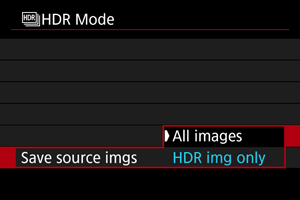 - Ak chcete uložiť len snímku v režime HDR, vyberte možnosť [HDR img only/Iba HDR obrázky].