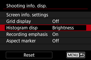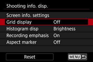 : Shooting info. disp./Zobrazenie informácií o snímaní] ().