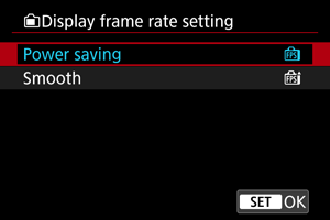 Môžete nastaviť snímkovú frekvenciu zobrazenia na obrazovke snímania pri snímaní statických záberov. Vyberte, či chcete šetriť energiu batérie alebo používať vysokú snímkovú frekvenciu na zobrazenie.