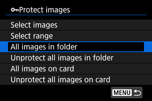 : Protect images/Ochrániť snímky], ochránia sa všetky snímky v priečinku alebo na karte.
