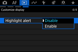 1. Vyberte položku [Prehrávanie: Highlight alert/Upozornenie na najjasnejšie oblasti] ().