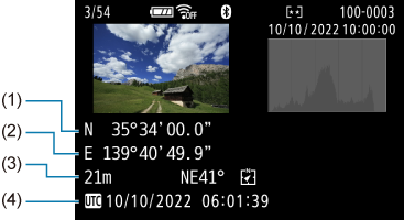 Informácie o polohe pridávané k snímkam môžete skontrolovať na obrazovkách s informáciami o snímaní ().
