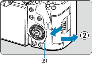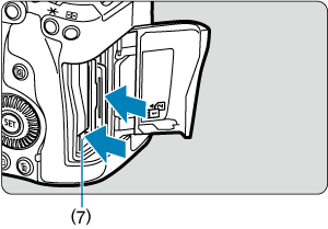 - Karta CFexpress: Stlačením tlačidla na vysunutie karty (7) vysuňte kartu.