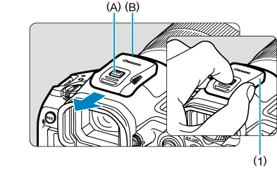 - Položte prst na kryt pätice (1), ako je znázornené na obrázku, a zatlačte na diel (A), pričom sťahujte kryt v znázornenom smere. Ak je odstraňovanie náročné, skúste kryt stiahnuť prstom položeným na dieli (B).