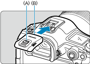 - Posúvajte kryt pätice v znázornenom smere a tlačte na diel (A), až kým sa diel (B) úplne nezasunie.