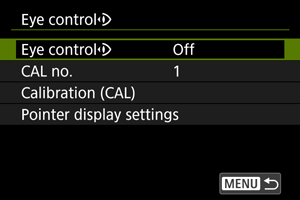 - Keď na tom istom fotoaparáte bude ovládanie okom používať viac osôb, každá osoba by si mala zvoliť iné číslo kalibrácie a vykonať kalibráciu. Podobne, keď rovnaká osoba bude používať ovládanie okom s okuliarmi a kontaktnými šošovkami alebo bez nich, je potrebné zvoliť iné kalibračné číslo a vykonať kalibráciu pre každú situáciu.