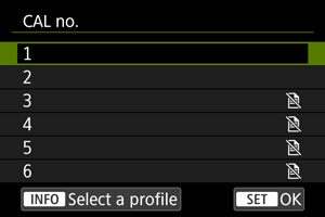 Ak chcete zaregistrovať kalibračné údaje pre iných používateľov alebo podľa okuliarov (napríklad s okuliarmi alebo kontaktnými šošovkami alebo bez nich), vyberte dostupné číslo, ktorému chcete priradiť údaje, z čísel označených ikonou [] na obrazovke [CAL no./Číslo CAL], potom vykonajte kalibráciu.