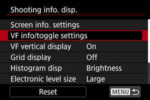 vyberte obrazovky s informáciami, ktoré sa majú zobrazovať v hľadáčiku.