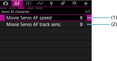 Ponuky kariet: AF (Nahrávanie videozáznamu)