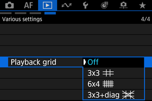 Na obrazovke prehrávania môžete cez statické zábery v zobrazení jednotlivých snímok zobraziť mriežku. Táto funkcia je užitočná pri kontrole zvislého a vodorovného naklonenia a kompozície snímky.