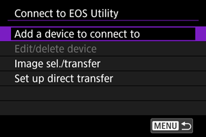 V nástroji EOS Utility kliknite na položku [Pairing over Wi-Fi/LAN/Spárovanie cez Wi-Fi/LAN].