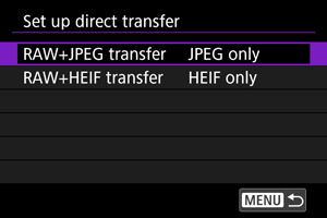 Pri snímkach RAW+JPEG alebo RAW+HEIF môžete určiť, ktorá snímka sa má preniesť.