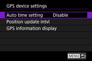 - Podrobné informácie o položke [Set up/Nastavenie] nájdete v návode na používanie zariadenia GP-E2.