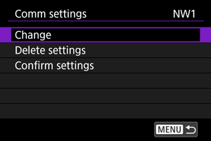 Môžete kontrolovať, meniť alebo odstrániť nastavenia pripojenia uložené vo fotoaparáte.