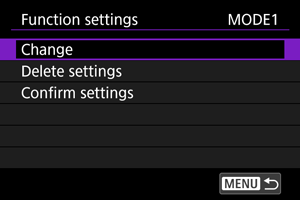 Výberom možnosti [Select from list/Vybrať zo zoznamu] sa zobrazia nastavenia funkcií uložené vo fotoaparáte. Vyberte nastavenia funkcií, ktoré chcete použiť.