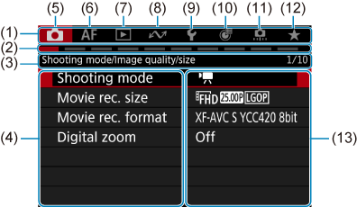 prepínajte medzi hlavnými kartami (skupiny alebo funkcie). Karty môžete prepínať aj stláčaním tlačidla páčky zoomu.