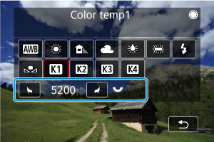 ] nastavíte podľa údajov komerčne dostupného kolorimetra, odfotografujte skúšobné zábery a upravte nastavenie tak, aby sa kompenzoval rozdiel medzi hodnotou farebnej teploty podľa meradla a hodnotou farebnej teploty fotoaparátu.