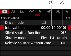 Na obrazovke ponuky sa zobrazia nastavenia intervalového časovača.