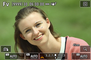 - Hodnoty rýchlosti uzávierky, hodnota clony a citlivosť ISO nastavené na hodnotu [AUTO] sú podčiarknuté.